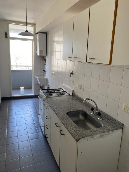 Cocina totalmente equipada, con muebles altos y bajos. Mesada de mármol y pisos cerámicos. Pileta para lavar y conexión para lavarropas